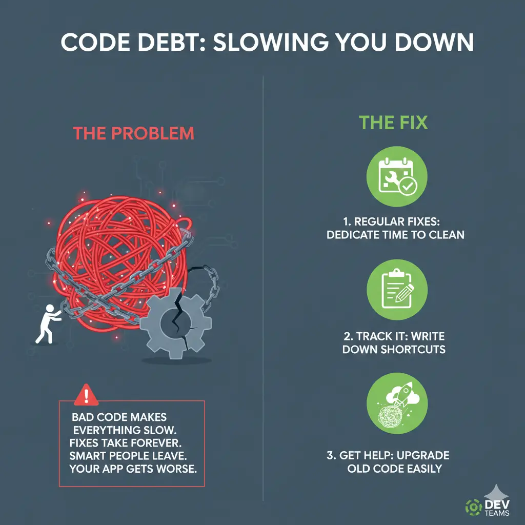 Technical debt isn't just "messy code"; it's a negative cash flow driver. It's the reason a two-day feature now takes two weeks. It's the drag that causes your top engineers to quit. As your product grows, this debt compounds, forcing developers to spend more time firefighting legacy issues than delivering value.
