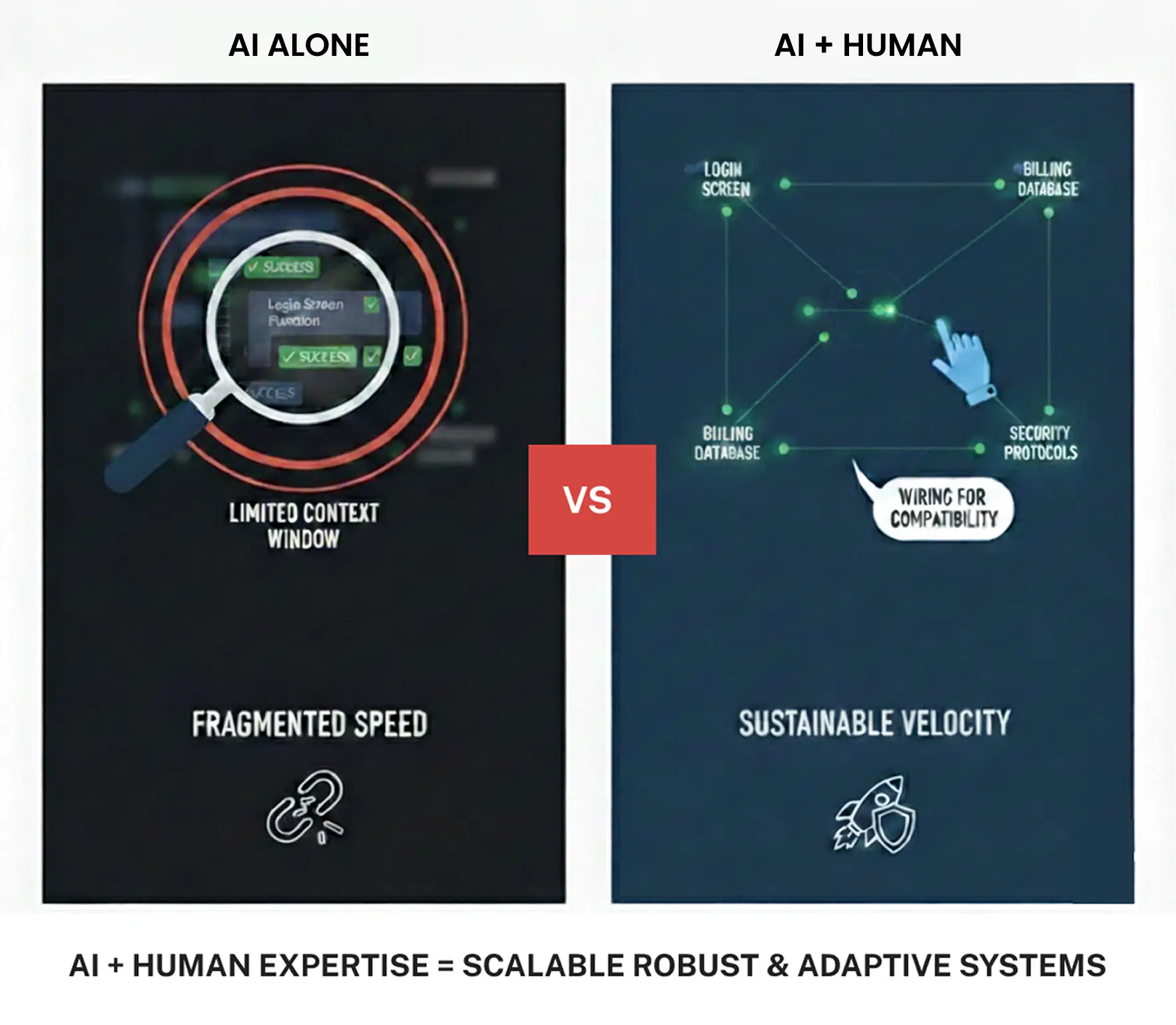 Think of it this way. A power drill makes a carpenter faster, but it does not tell them how to design a roof that won't collapse. We view AI as the ultimate force multiplier. It crushes repetitive tasks and generates boilerplate code which helps us move at incredible speeds. But just as you wouldn't hand a heavy-duty tool to someone who doesn't understand the structural integrity of a building, you shouldn't hand AI to a team that doesn't understand deep software architecture.